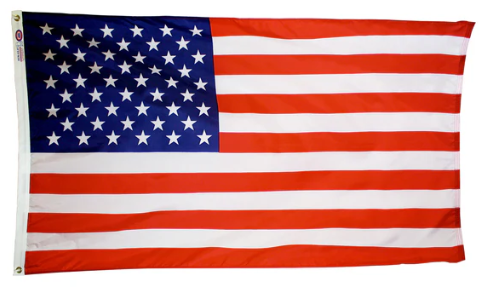 This United States flag is perfect for boaters. Made from 100% Heavyweight Solar Guard Nylon it is both durable and fast drying. Features strong duck heading and two large brass grommets. Fully dyed producing a rich, radiant appearance and extremely durable colors.